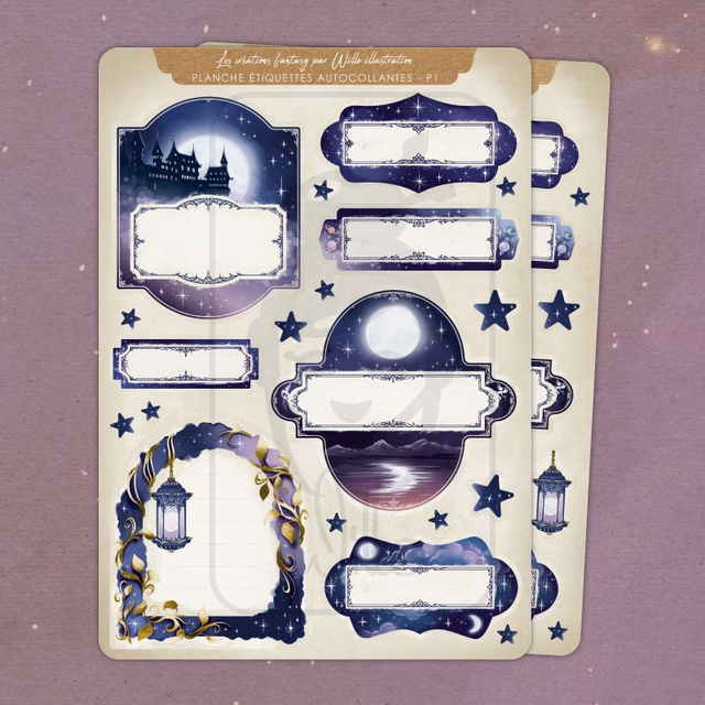 Envie de mettre de jolies étiquettes originales sur vos produits, vos cahiers ou même sur vos cadeaux à offrir ? Voici un jeu de x2 planches d'étiquettes sur le thème de la fantasy et du rêve avec, en bonus des petites étoiles à coller ;)